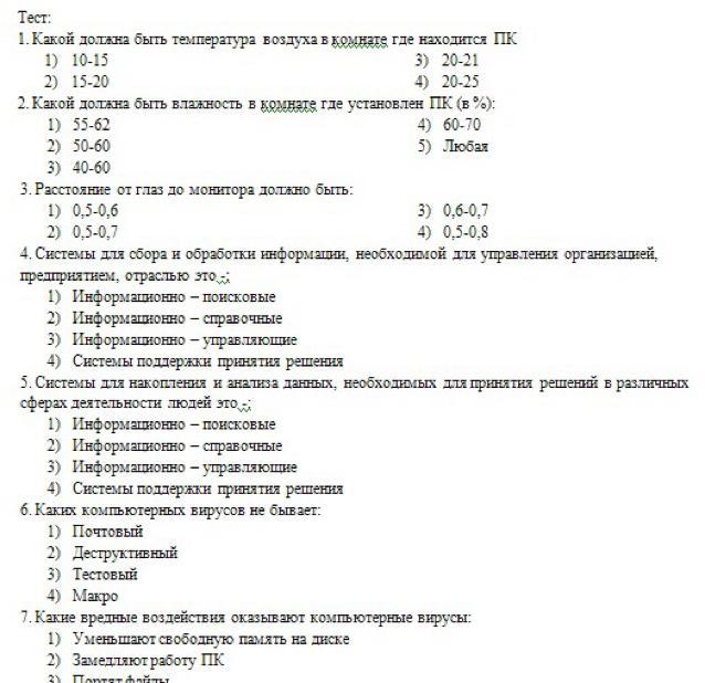 Тест по информатике. Нужна помощь. Всем заранее говорю спасибо