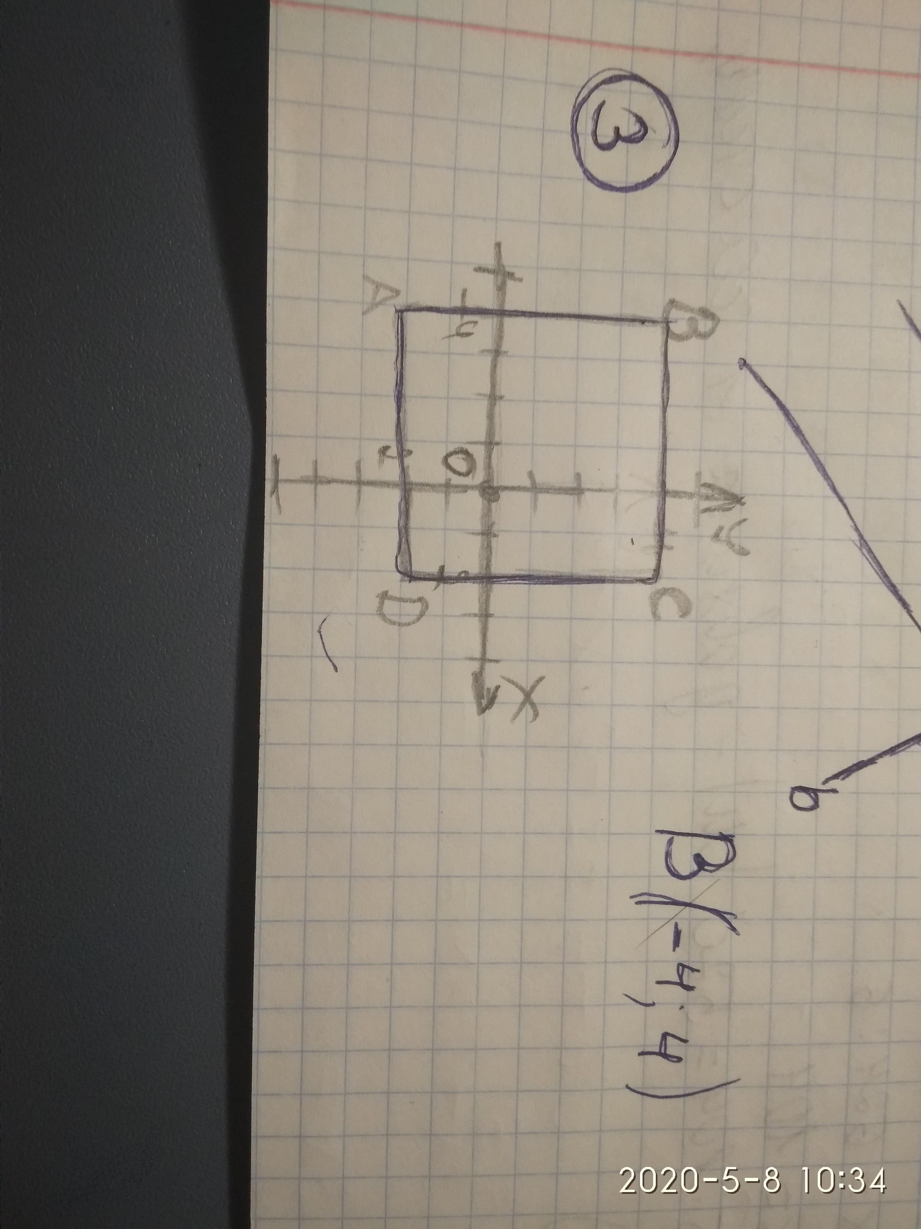 Даны координаты трех вершин прямоугольника АВСD: В(2; 2), С(2; -2) и D(-4; -2).