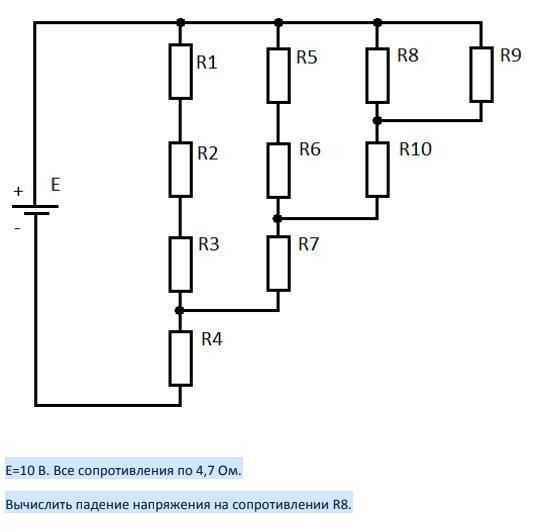 Вычислить падение напряжения на сопротивлении R8.