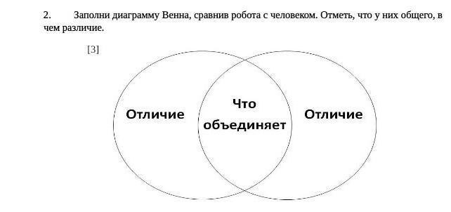 Заполни диаграмму Венна, сравнив робота с человеком. Отметь, что у них общего, в чем различие. Срочно пж пж срочно через 1минуту здавать