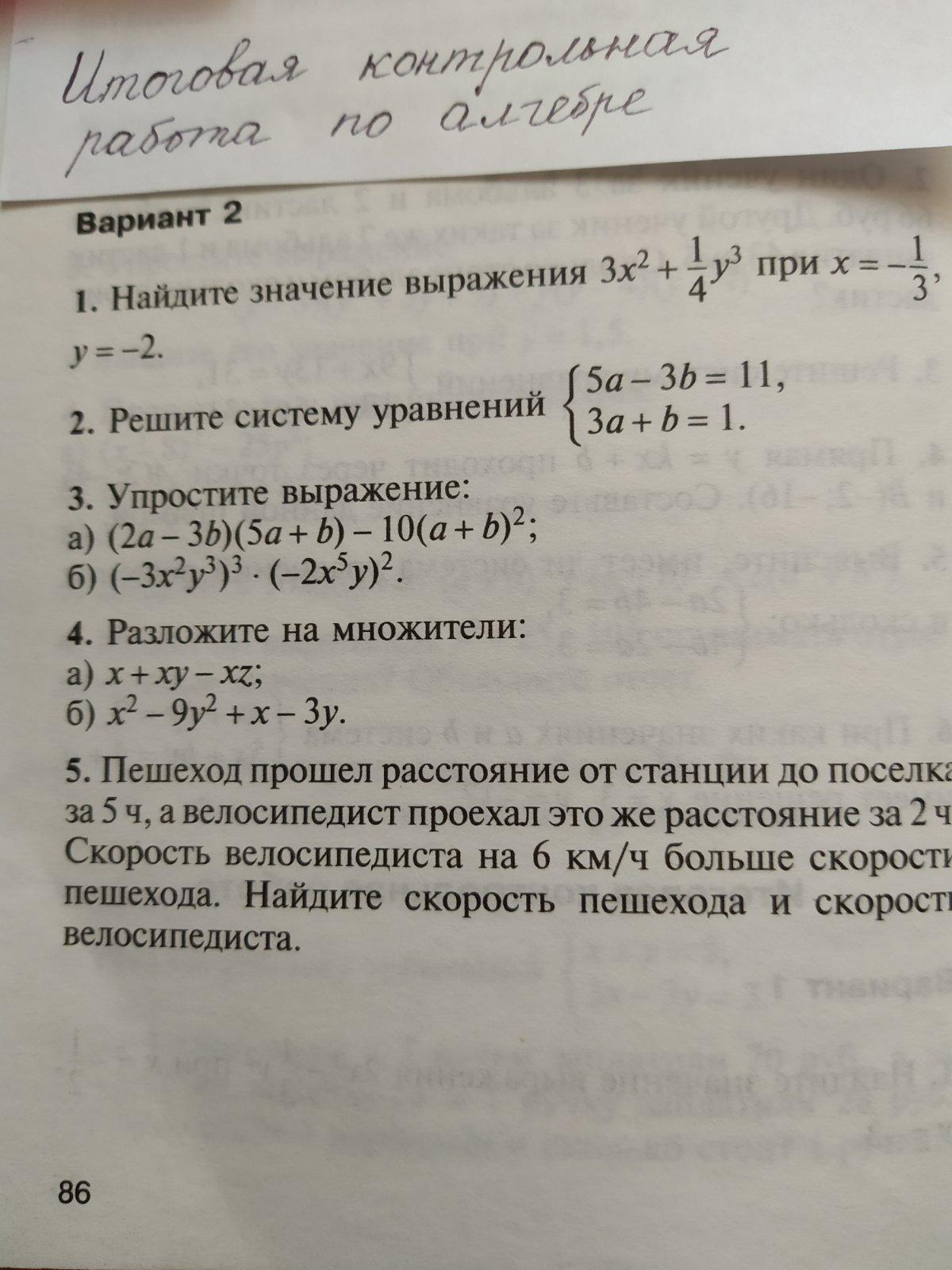 CРОЧНООООО!!!!! КР ПО АЛГЕБРЕ 7 КЛАСС