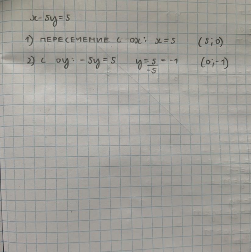 9.Укажите точки пересечения графика уравнения х-5у=5 с осями координат *