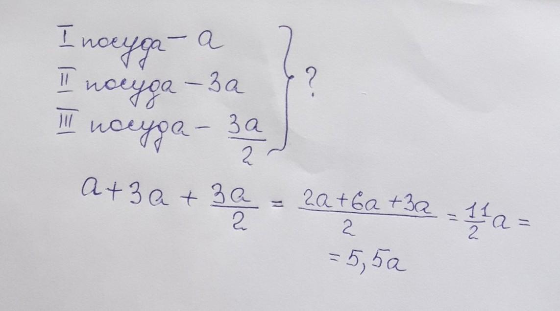 В первой посуде a яблок. Во второй посуде в 3 раза больше, чем в первой, а в третьей посуде в 2 раза меньше яблок, чем во второй. Сколько яблок в трех посудах вместе? Напишите выражение с переменной соответственно задаче.