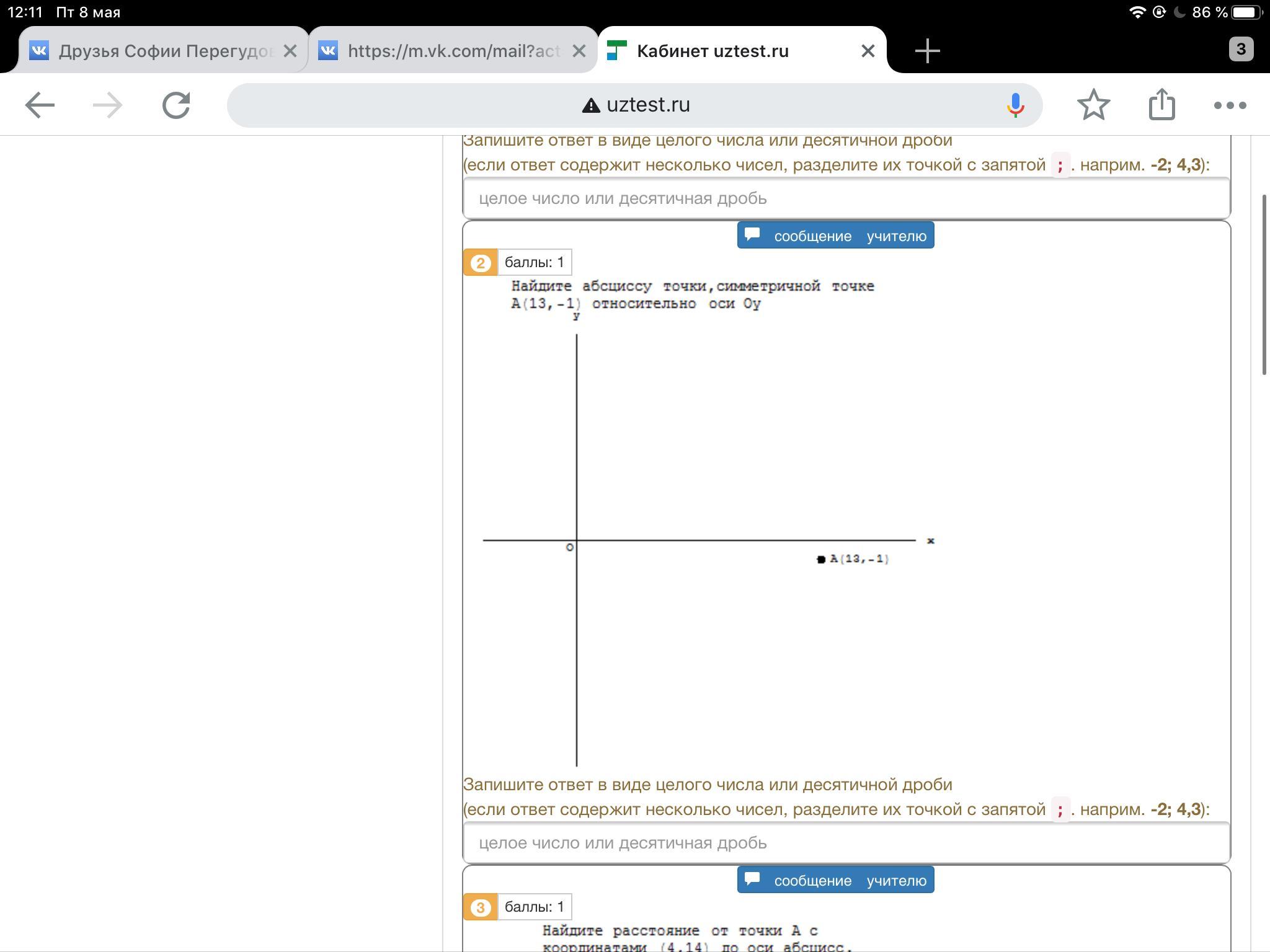 Найдите абсциссу точки ,симметричной точке A (13,-1) относительно оси 0y. СРОЧНО!!!!