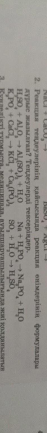 2. Реакция теңдеулерінің қайсысында реакция өнімдерінің формулалары