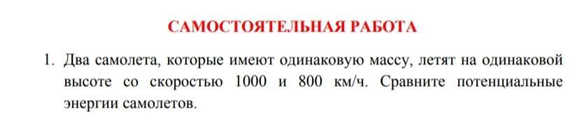 Потенциальная энергия этих самолётов равна так как не изменяются высота и масса
