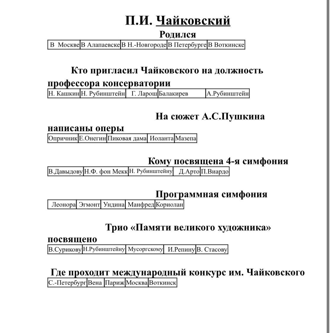 Помогите пожалуйста тест по Римскому-Корсакову и Чайковскому