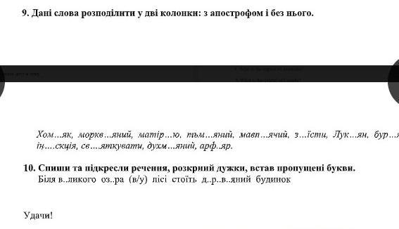 9. С АПОСТРОФОМ: хом*як матiр*ю мавп*ячий з'їсти Лук*ян бур*ян ін*єкція арф*яр. Все остальное без апострофа, вместе.