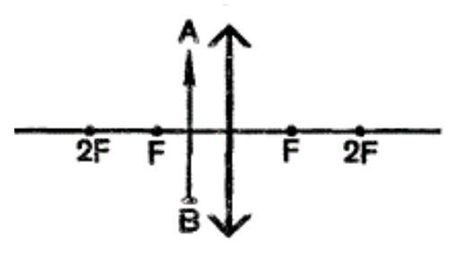 Построить изображение предмета в линзе. Дать характеристику изображению.