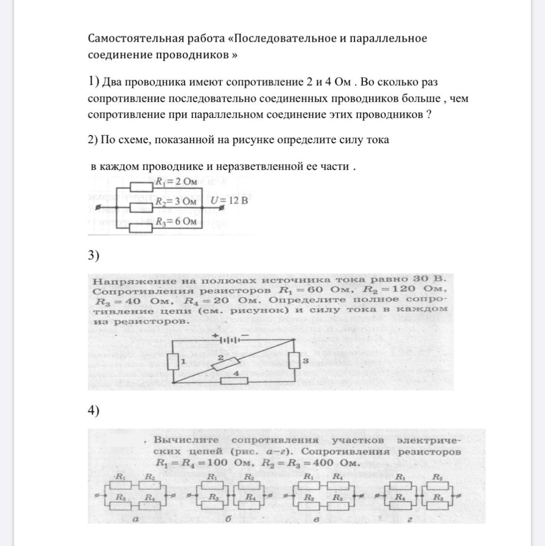 Пожалуйста помогите физика 8 класс самостоятельная работа «последовательное и параллельное соединение проводников»