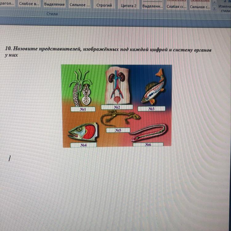 10. Назовите представителей, изображённых под каждой цифрой и систему органов у них