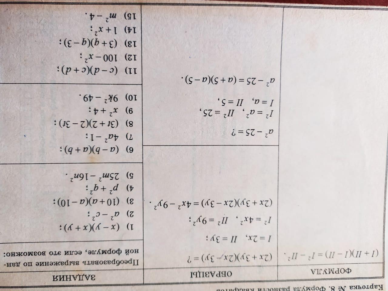 1) (x - y)(x + y) = x² - y²