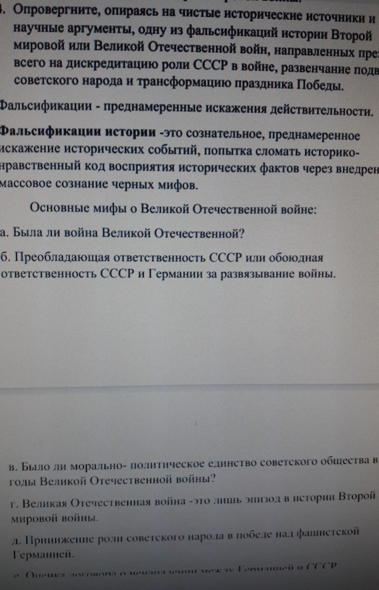 Нужно ответить на вопрос.Опровергнуть один из мифов о ВОВ представленных на фотографии.