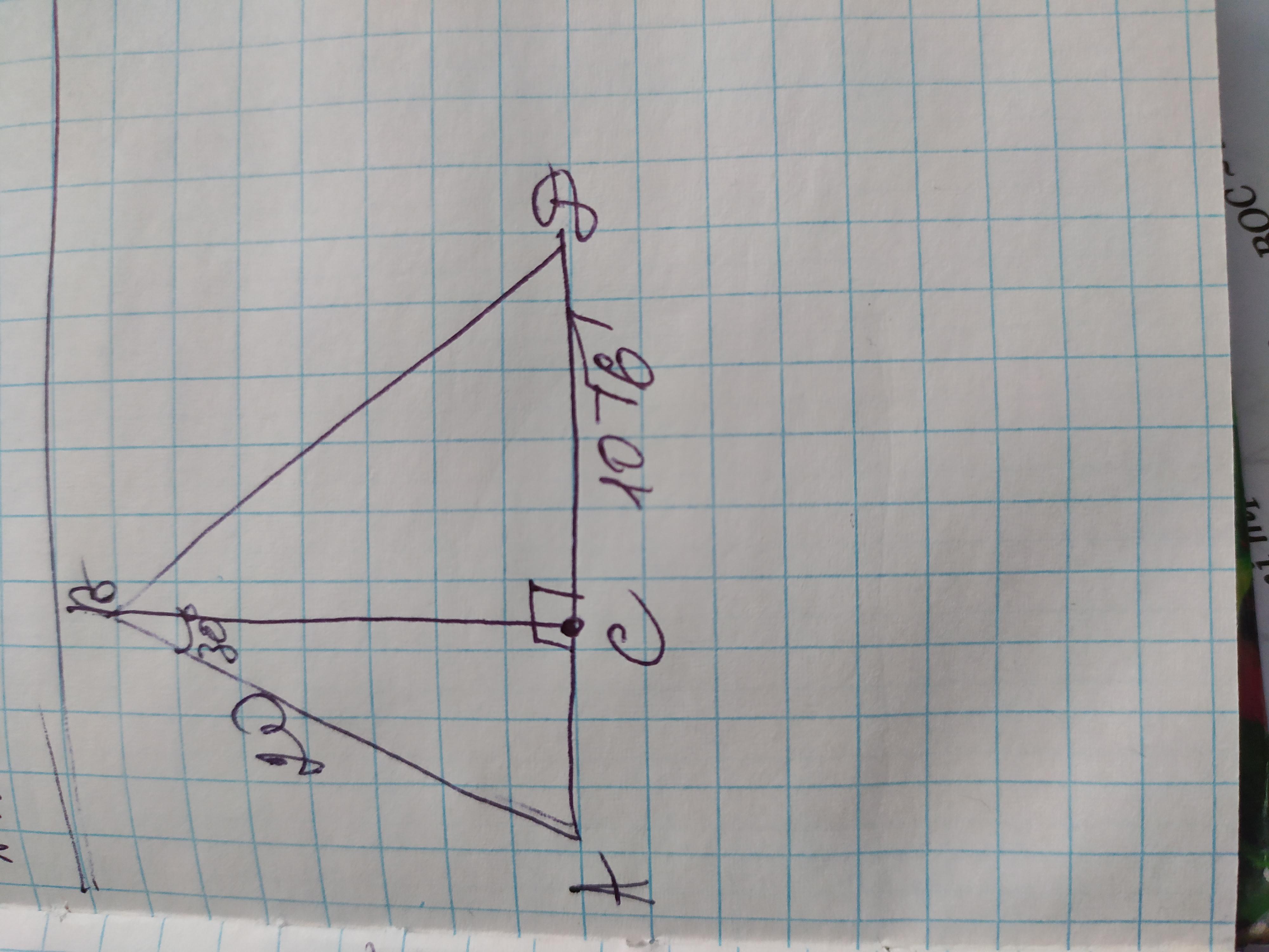 Рассмотрим ∆АВС. Он является прямоугольным, также по условиям угол АВС= 30°, а катет, лежащий напротив него равен половине гипотенузы, и будет равен 20÷10=2