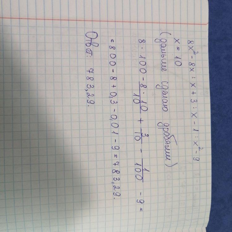 3. Упростите и найдите значение выражения: 8x^2-8x/x+3:x-1/x^2-9 при х=10