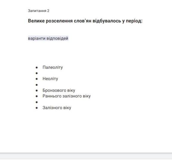 по-моему, неолит, ну если великое переселение славяней произошло 4-7 ст.
