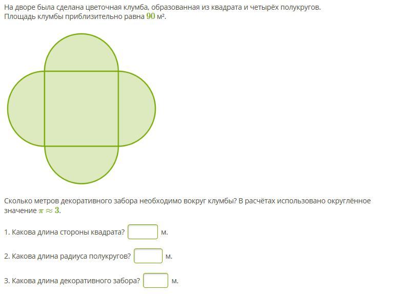 Длина Окружности =2πr=dπ, где r-радиус; d- диаметр, π=3