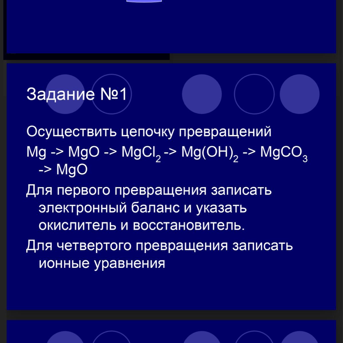 Ответ: электронный баланс: магний-происходит окисление. Магний является восстановителем