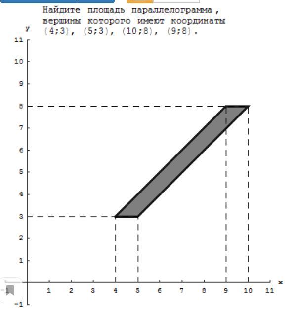 Площадь параллелограмма равна произведению стороны на выпоту. Сторона равна (5-4) = 1, Высота равна (8-3) = 5. 1 * 5 = 5