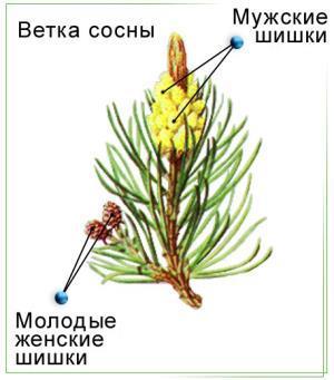 Мужские — зеленовато-жёлтые, собраны тесными группами у оснований молодых побегов, и женские — красноватые, сидят поодиночке на их вершинах.