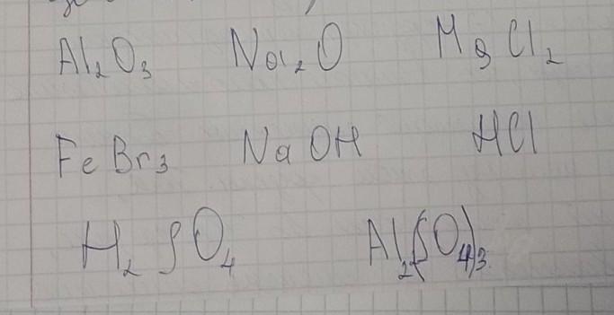 пожалуйста помогите определить степень окисления элементов в молекулах: AI2O3, Na2O, MgCI2, FeBr3, NaOH, HCI, H2SO4, AI2(SO4)3