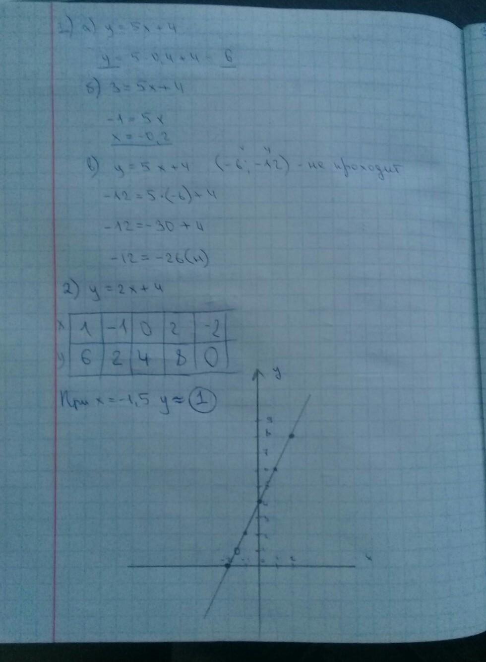 2. Постройте график функции у = 2х + 4. По графику укажите, чему равно значение у, при х = - 1,5.
