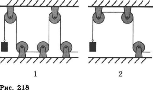 Помогите с физикой! Рис. 218(1) - с какой силой нить действует на каждый блок, прикрепленный к потолку, если масса груза 10 кг?