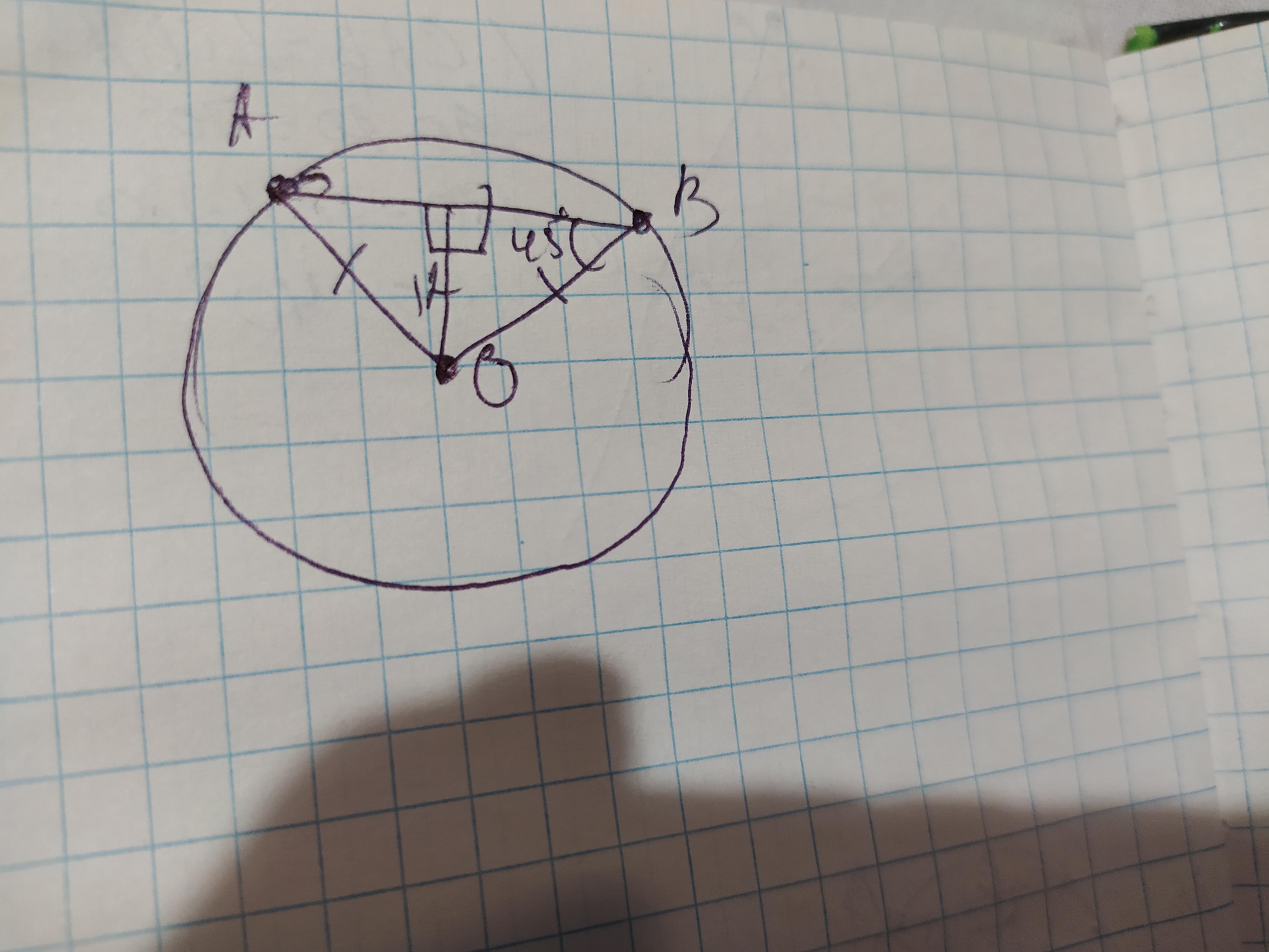 Соединим точку О с точками А и В. У нас получился равнобедренный ∆АВО, в котором стороны ОА=ОВ= радиусу. ОВ в этом треугольнике является высотой и делит его на 2 равных прямоугольных треугольника. Рассмотрим ∆ ОВС. В нём по условиям угол В= 45°, исходя из этого ∆ОВС-равнобедренный, потому что в равнобедренном прямоугольном треугольнике острые углы по 45°. Значит ОС=ВС=12см. Так как ∆АОВ равнобедренный, то АС=ВС=12см, тогда АВ=12×2=24см; АВ=24см