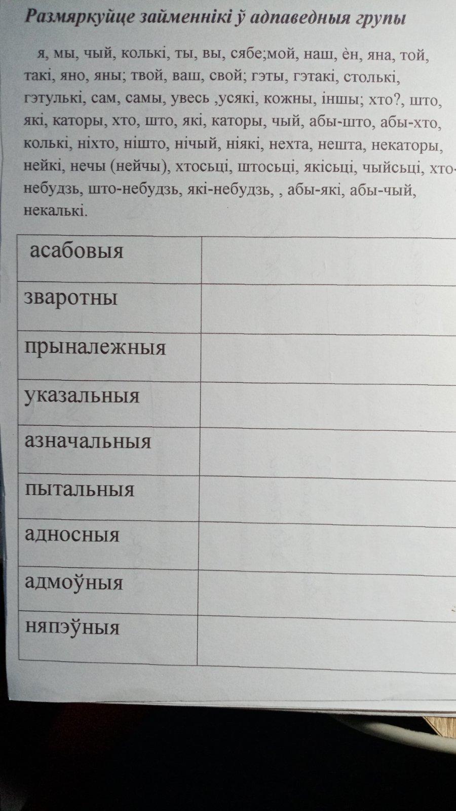 Пытальныя хто, што, яки, каторы, чый, кольки,