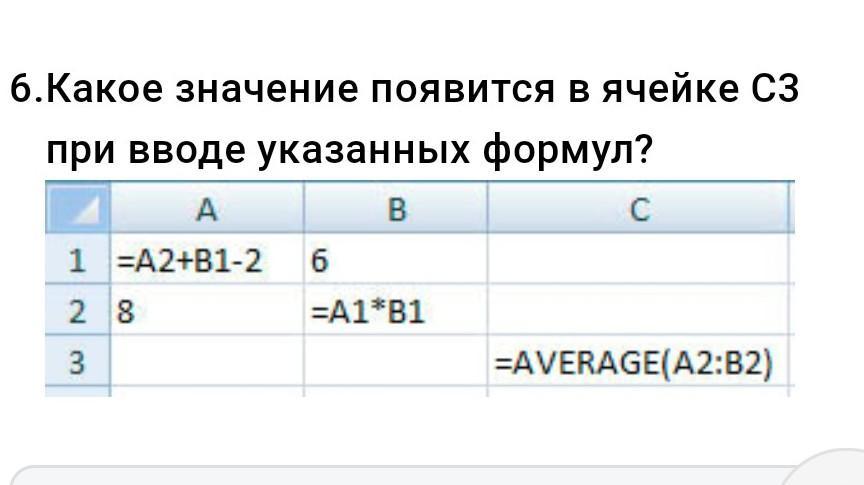 Ячейка C3: AVERAGE (в русской версии - СРЗНАЧ) считает среднее значение. Диапазон A2:B2 состоит из двух клеток A2 и B2, в них записаны 8 и 72, среднее значение (8+72)/2=40