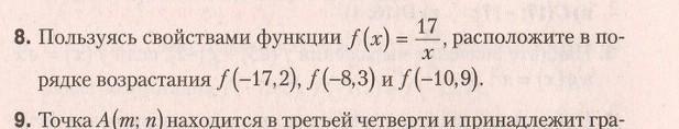 Пользуясь свойствами функции f(x) =17/x, расположите в порядке возрастания f(-17, 2), f(-8, 3), f(-10, 9).