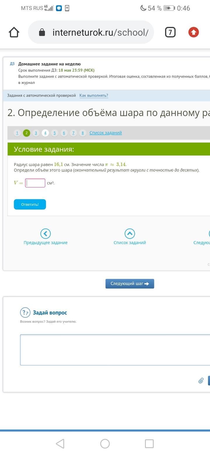 Пошаговое объяснение: по формуле объем равен четыре трети пи r куб