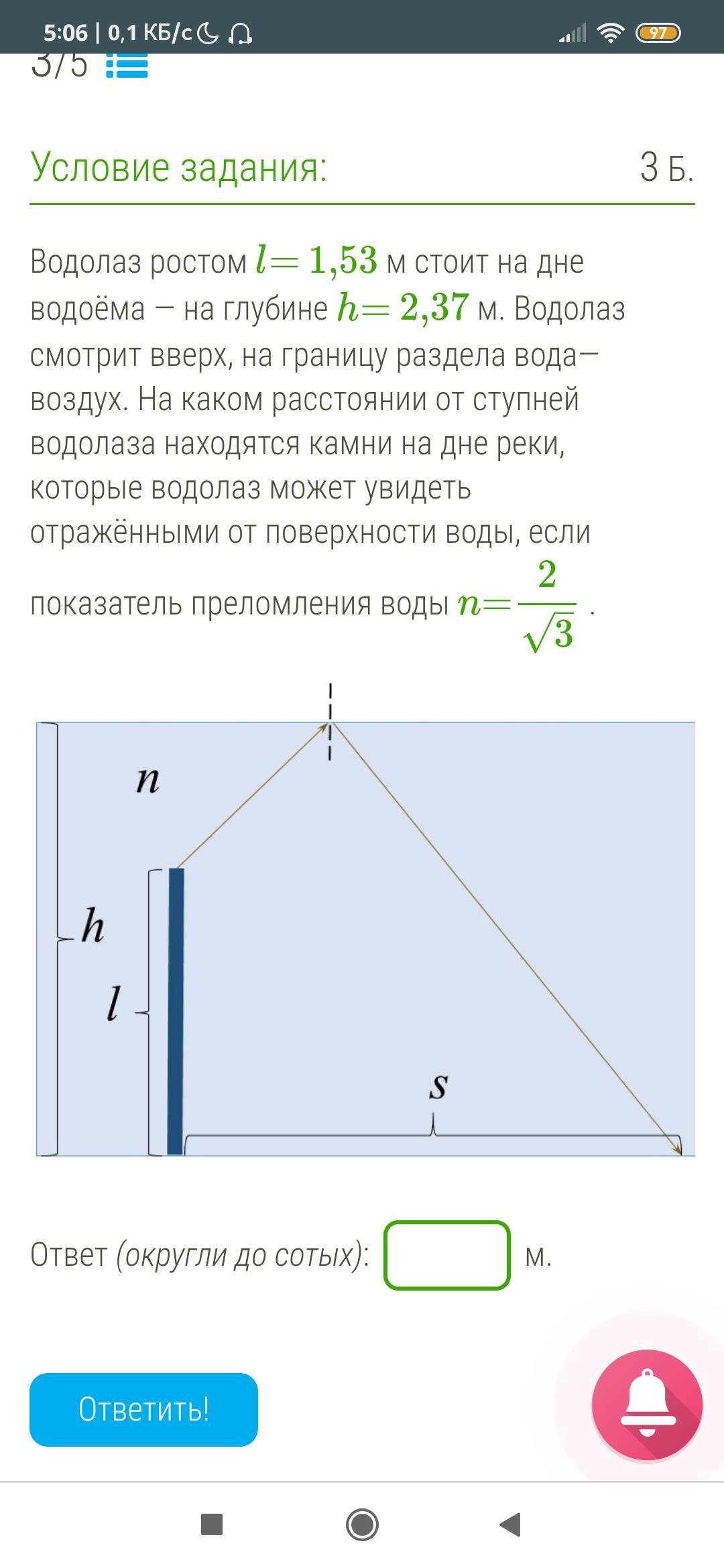 AC = BC·tgα = 0,84·tg60° = 0,84·1,73 = 1,45 м