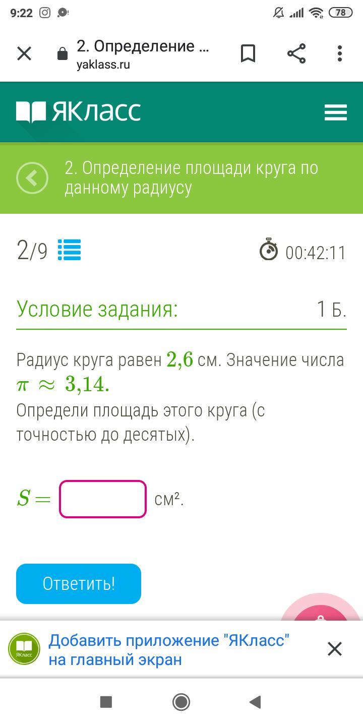 3) S=ПR²=3,14*(2,6*2,6)=21,2