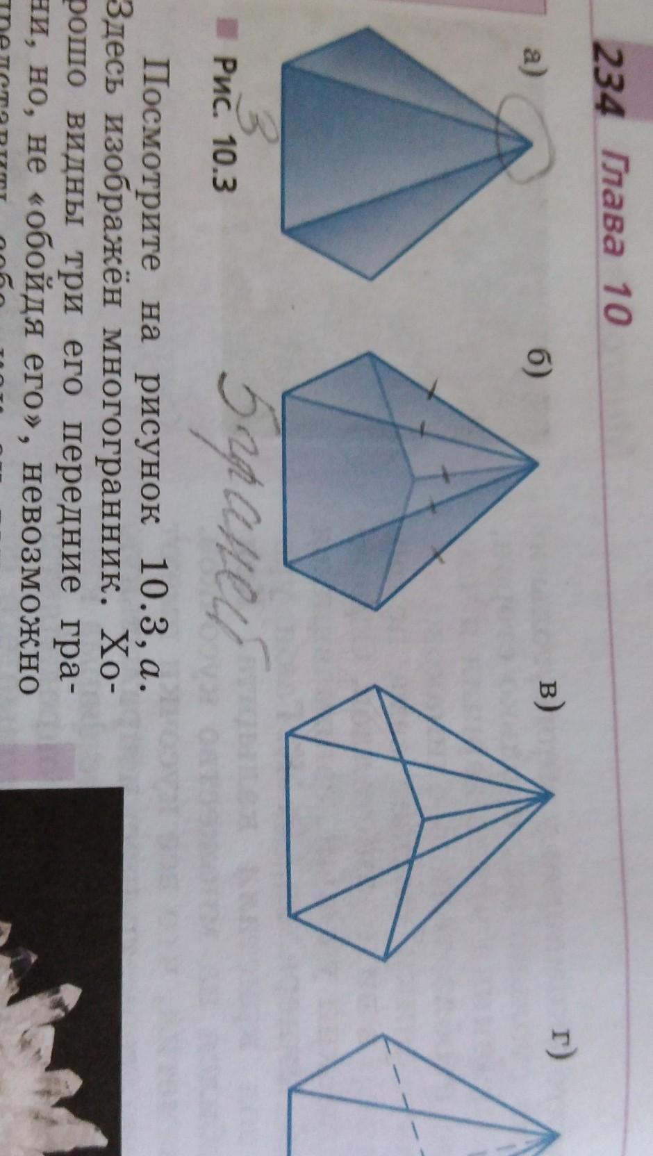 сколько у многогранника на рисунке 10.3 вершин видимых а сколько не видемых сколько рёбер сколько граней