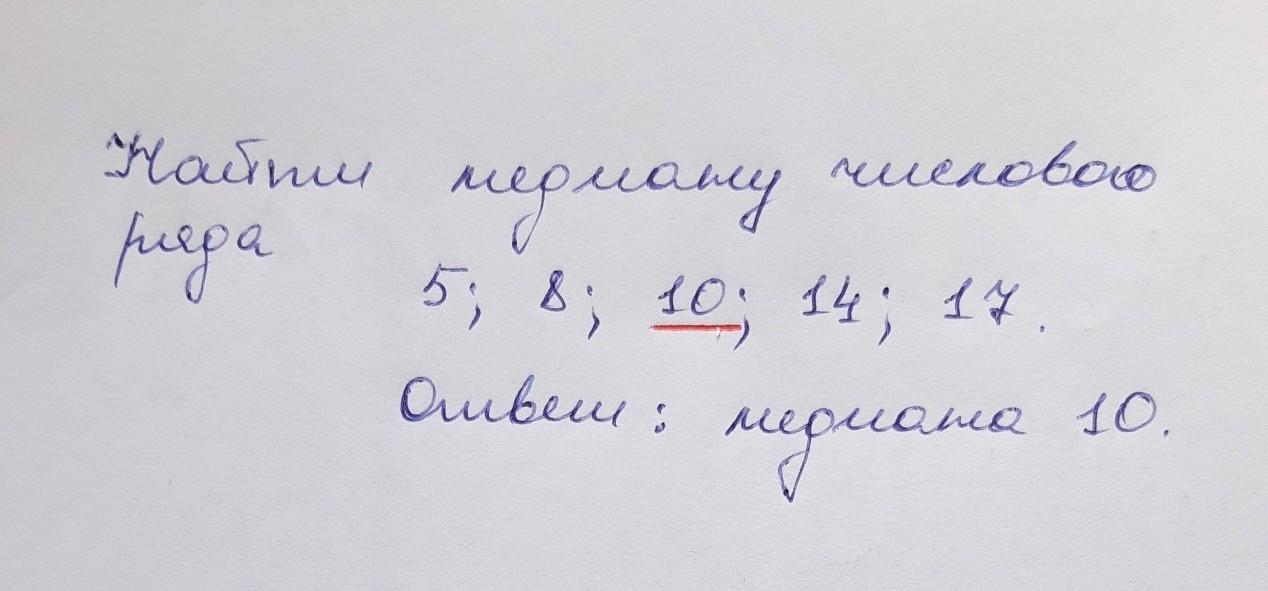 Медианой является число, стоящее посередине, если количество чисел ряда данных нечётное (так и есть). И получается в нашем случае, медиана - это число 10.