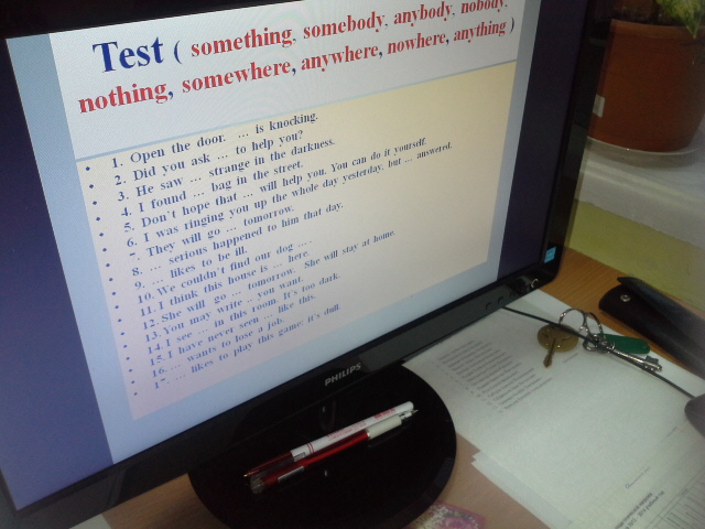 1 somebody 2 anybody 3 something 4 nobody 5 somebody 6 nobody 7 somewhere 8 something 9 nobody 10 anywhere 11 nowhere 12 nowhere 13 anything 14 nothing 15 nobody 16 nobody