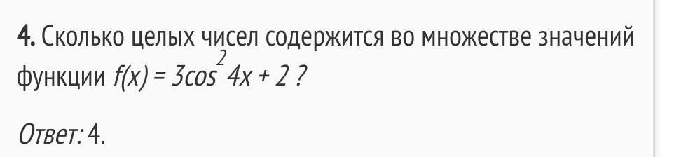 Значение исходной функции принадлежит множеству целых чисел, тогда значение функции принадлежит целым числам. Так как