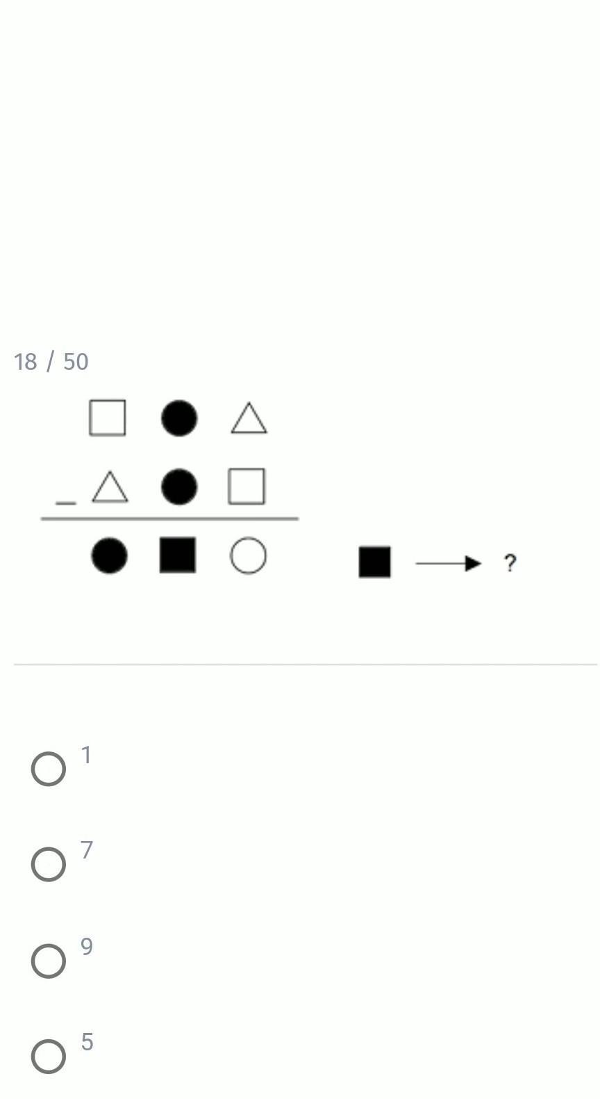 Белый Квадрат должен быть больше, чем Треугольник. Возьмём вместо белого квадрат 6, а треугольника 4, т.к. если возьмём 5, то пример станет нерешаемым. Вместо круга черного круга берём 1, т.к. 6 - 4 -1 ( занимаем на десятки) = 1.
