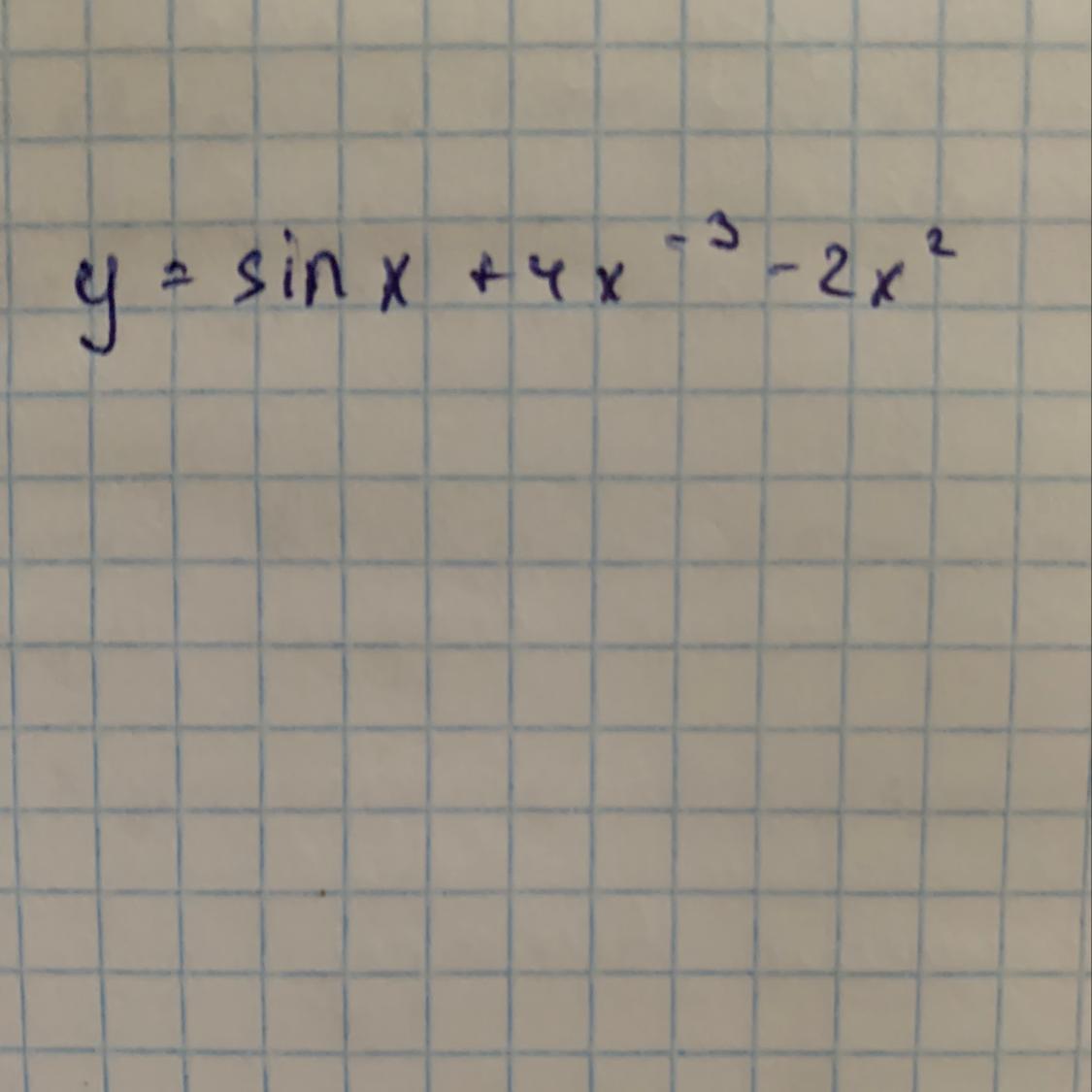 у′=( sin x+4х⁻³-2х² )′ = cos x-12х⁻⁴-4х¹