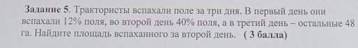 1)12+40=52(%)-они вспахали за два дня.