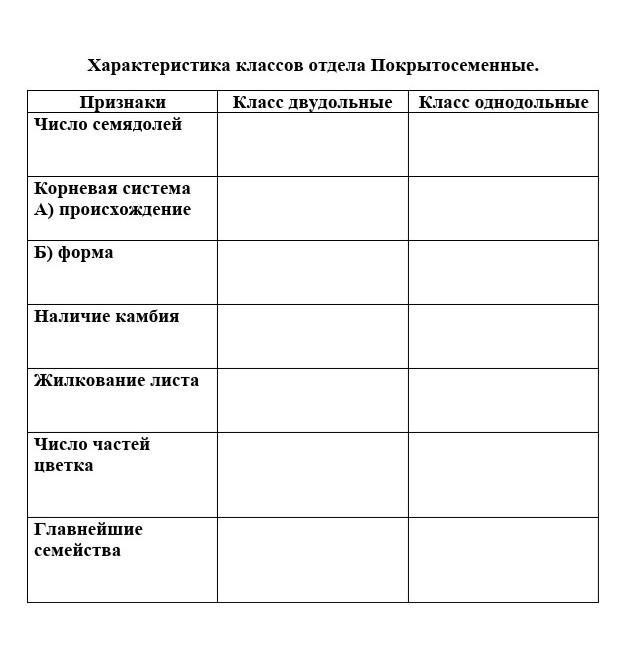 Основные признаки класса двудольных: