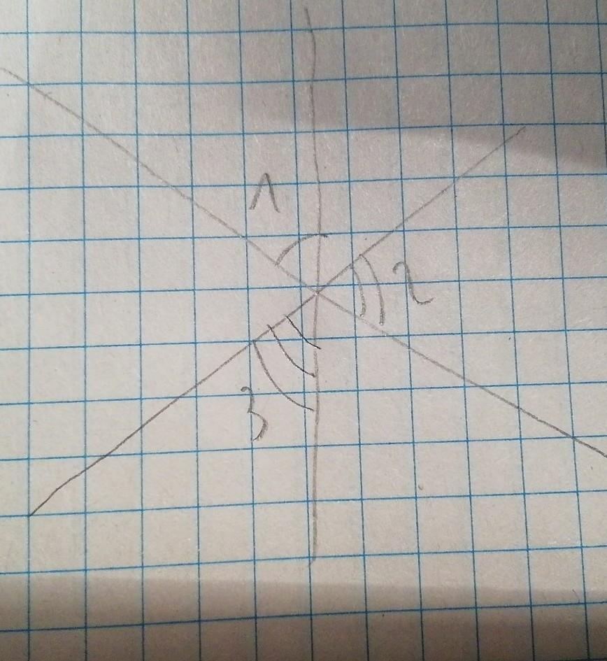 Три прямі перетинаються в одній точці. Знайдіть суму кутів 1 і 2 якщо кут 3=31