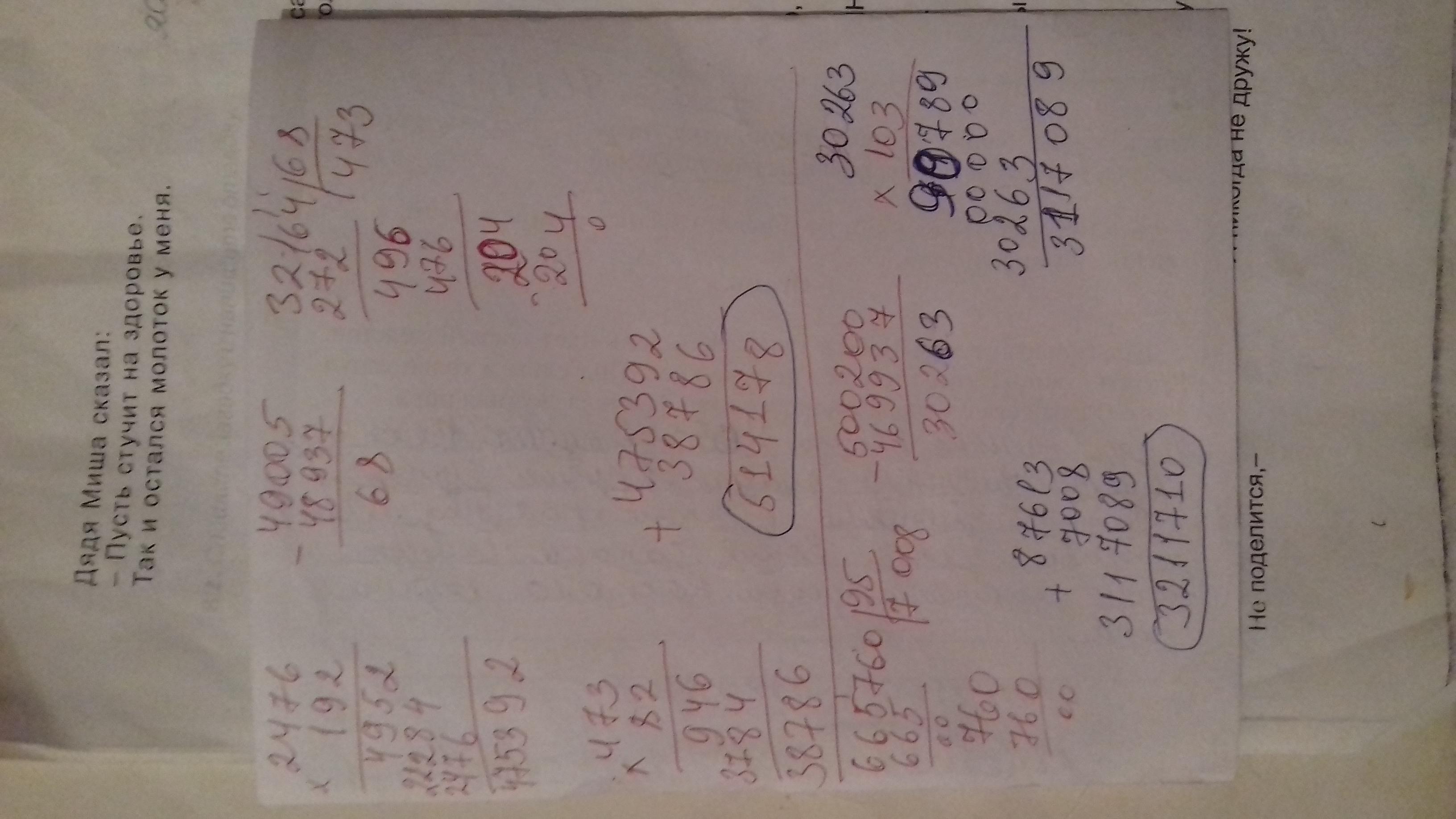 2476 • 192 + 32164 : (49005 – 48937) • 82=