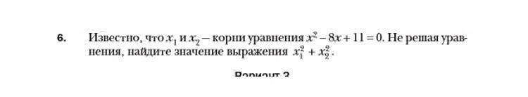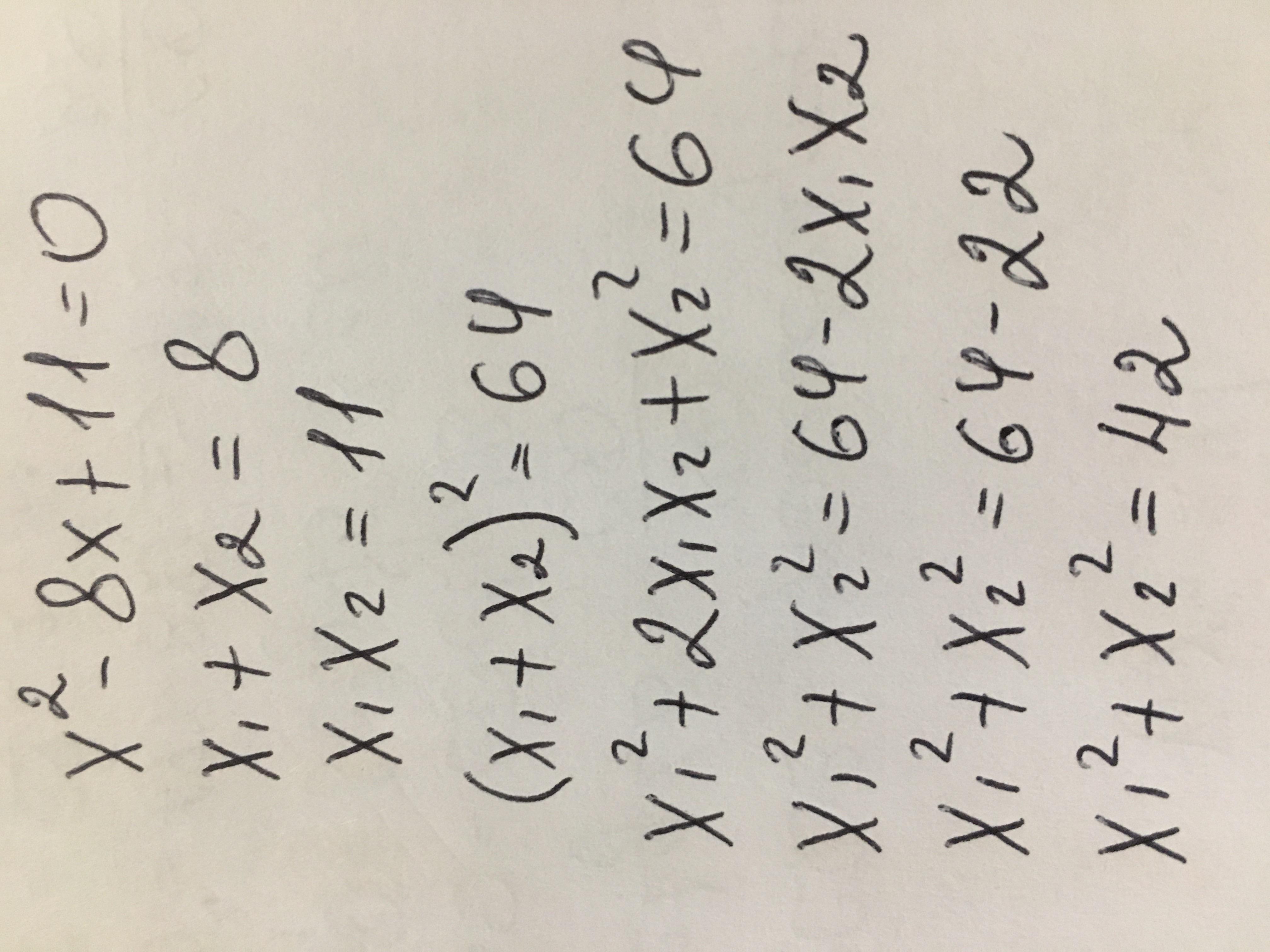 известно,что x1 и x2 - корни уравнения x^2-8x+11 = 0 .Не решая уравнение,найдите значение выражения x1^2+x2^2.