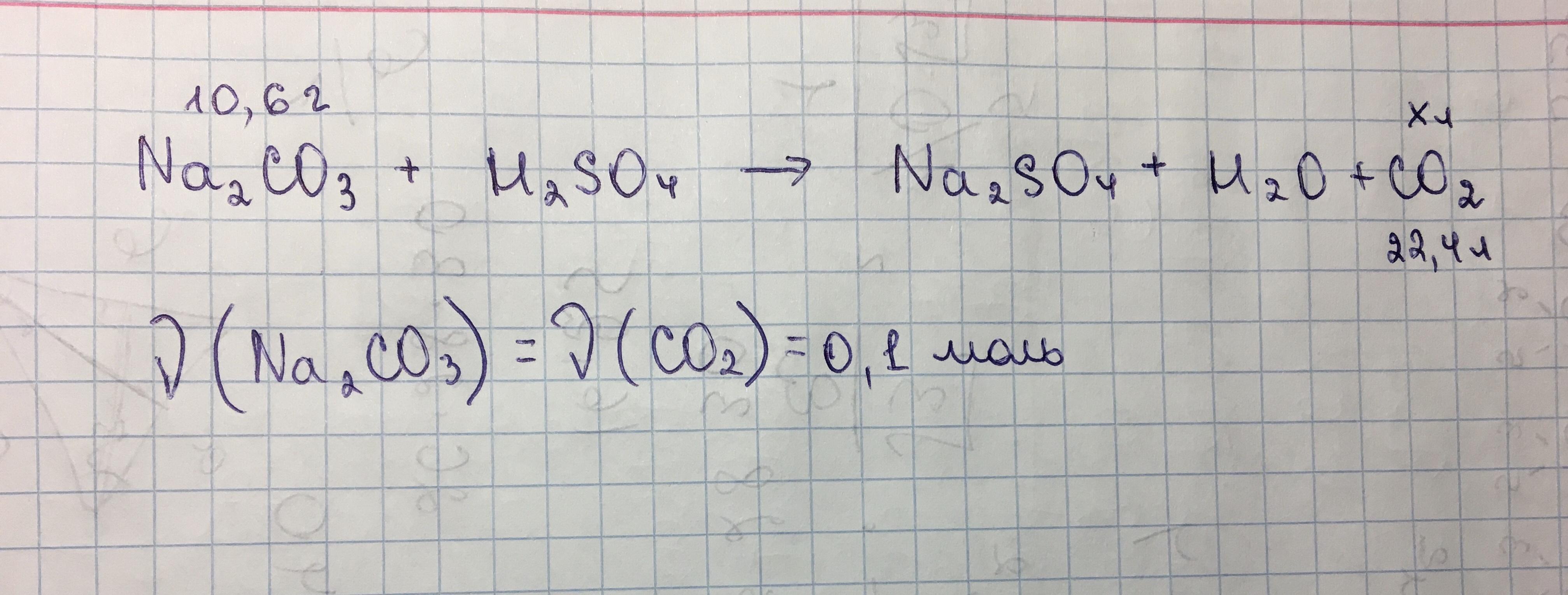 Оскільки к-ть реч. Na2CO3= к-ті реч. СО2=0,1моль