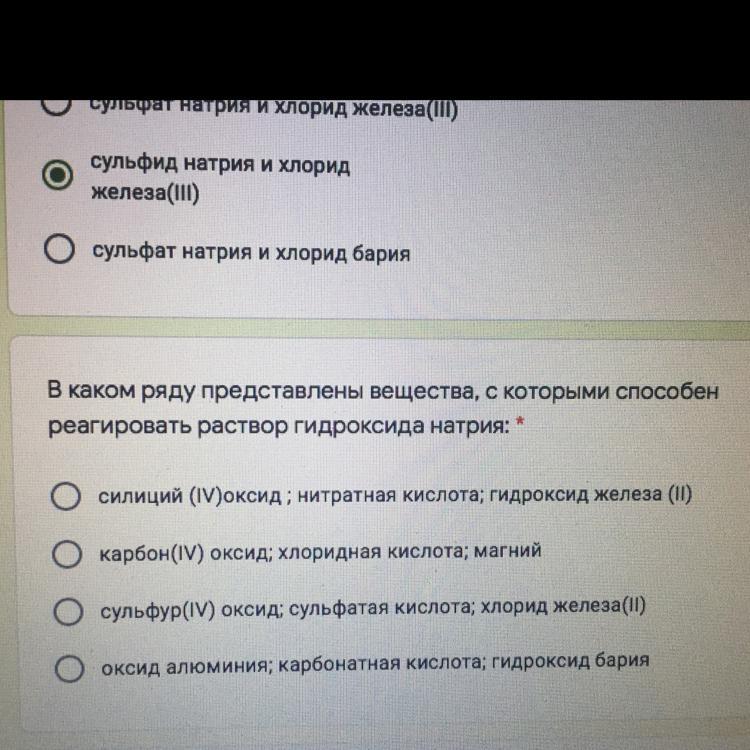 сульфур(IV) оксид; сульфатная кислота; хлорид железа (II)
