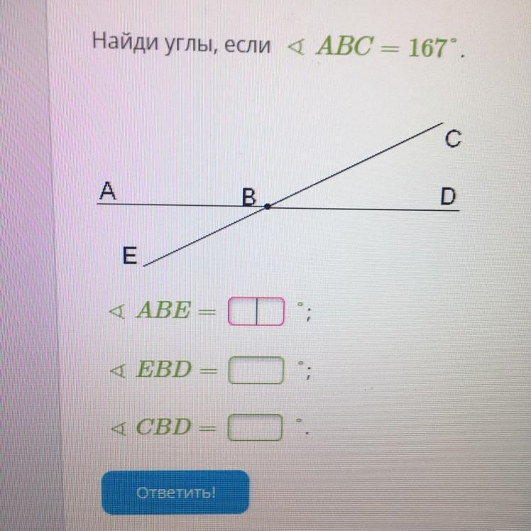 ∠ЕВД=∠АВС=167° (равны как вертикальные углы)