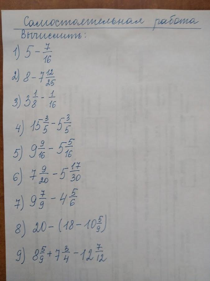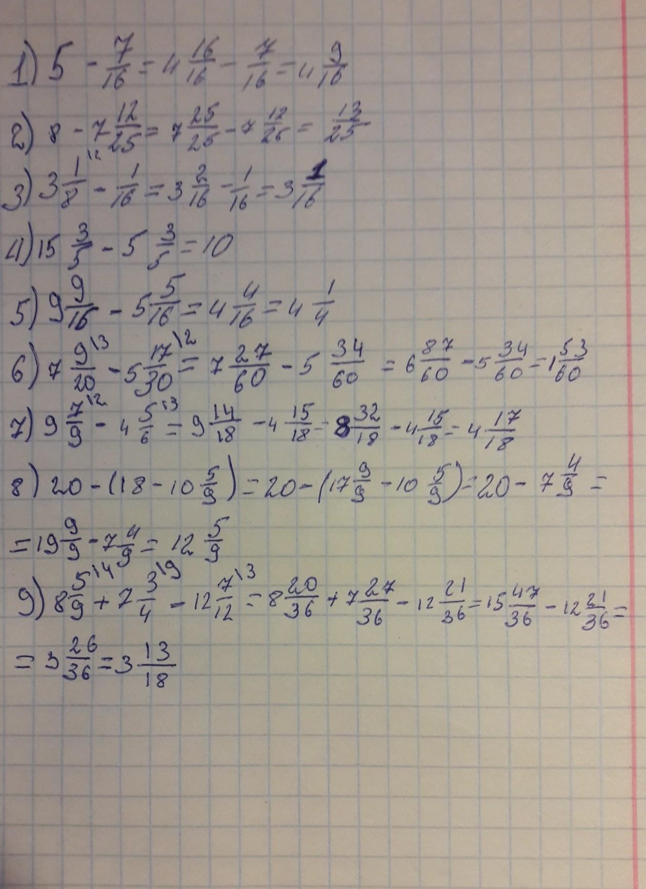 1)5-7/16=80-7=73/16=4 9/16 2) 8-7 12/25=200-188/25=7 13/25