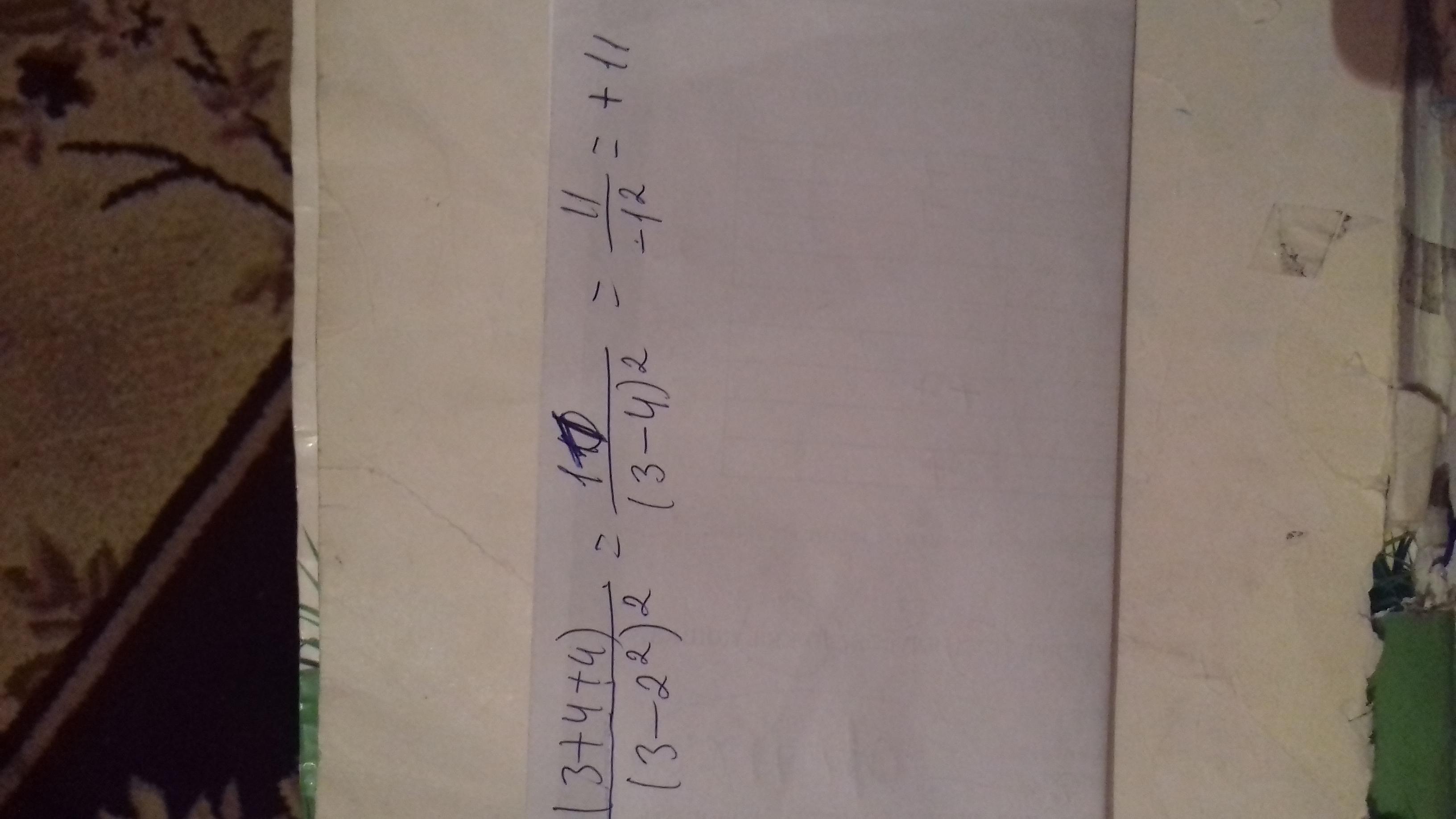 (3+4+4)/(3-2²)²=(3+4+4):(3-2²)²=11:1²=11:(1·1)=11:1=11;